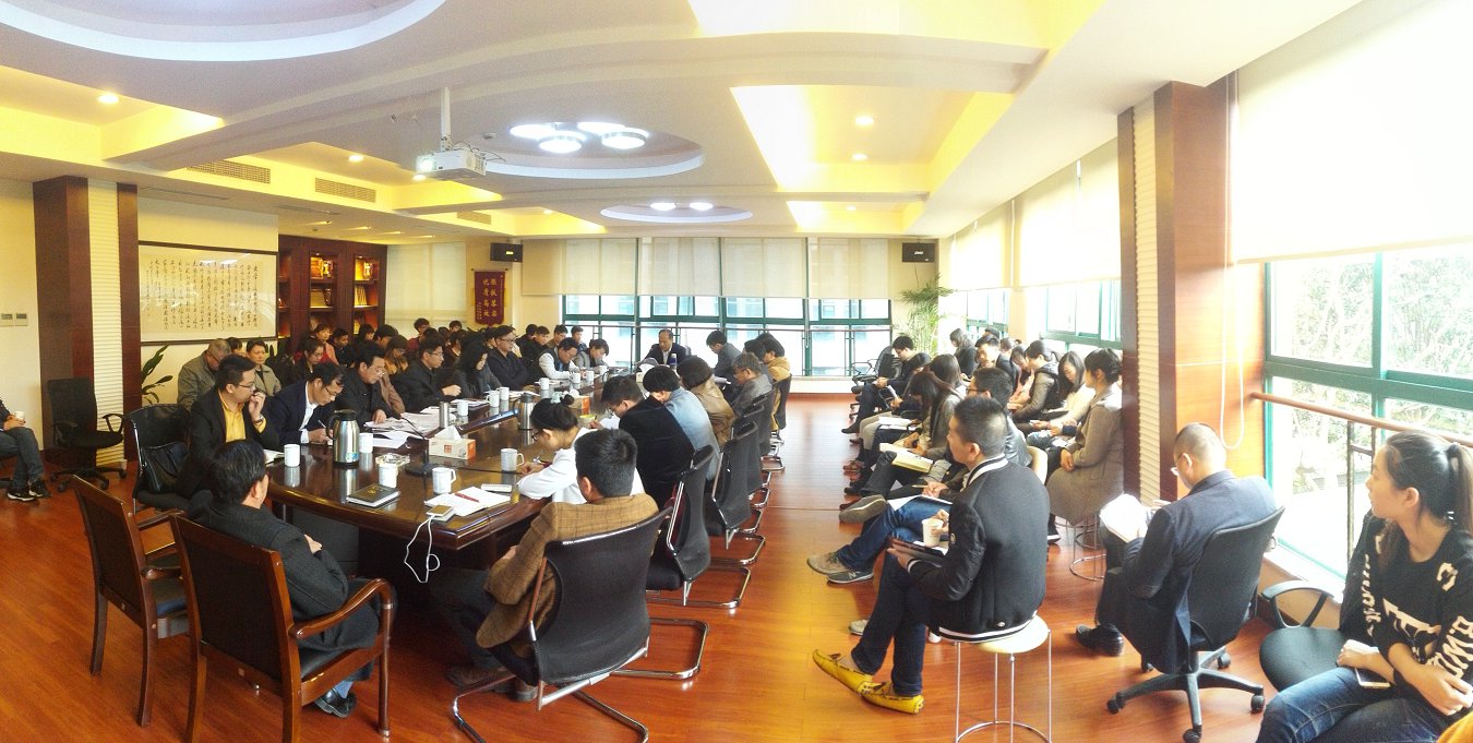 2016年3月31日下午,安博线上平台控股集团在公司四楼会议室召开了2015年度工作总结暨2016新年工作会议,参加会议的有集团全体行政人员和后勤人员。此次会议由集团总裁助理向媛主持,集团董事长兼总裁陈灿松作重要讲话。